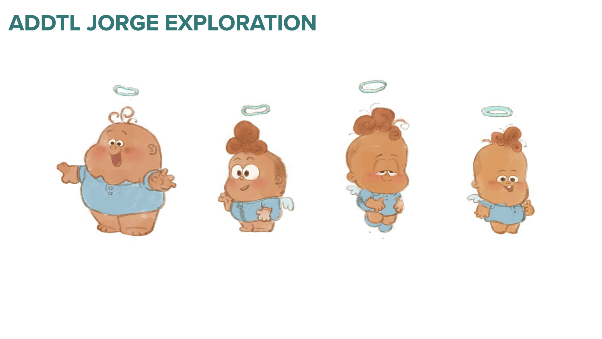 As the process continued, we narrowed down Angel’s characteristics across the various designs. Client mandatories included: young toddler age, baby clothes, similar complexions, and natural hair colors.